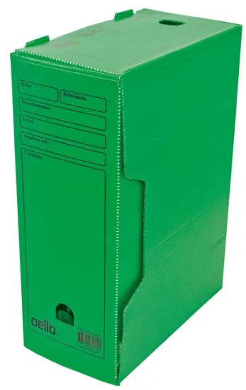 TAMANHO: 360x135x250mm - CAIXA ARQUIVO MORTO POLIONDA - CAIXA BOX - Caixa em plástico corrugado no tamanho ofício. Possui 3 áreas em diferentes posições de identificação. - Espessura: 2 - Gramatura: 320 g/m²